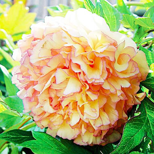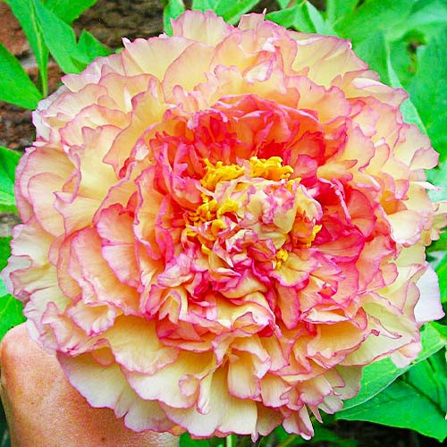 Великолепный пион Као древовидный способен достичь высоты 120-150 см. Его крупные густомахровые соцветия диаметром 20-25 см с желтой сердцевиной поражают удивительными оттенками рубина, пурпура и коралла. Обильно цветет в мае 8-15 дней, окутывая сад легким пряным ароматом.