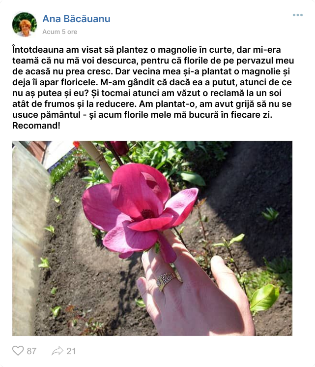 Clienții noștri au îndrăgit magnolia Jenny.