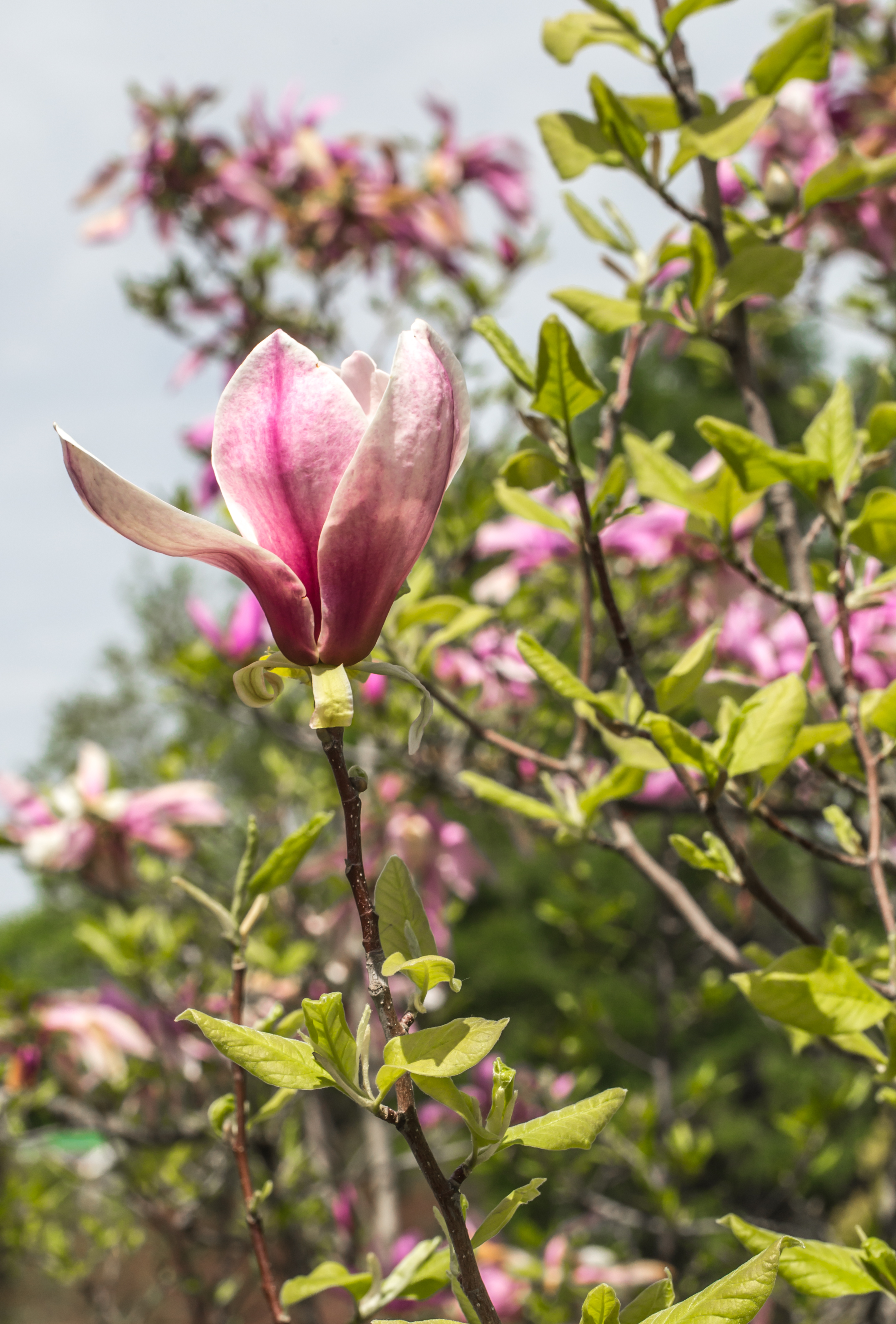 Декоративное дерево высотой до 7 м с крупными бокаловидными цветами, достигающими 25 см в диаметре. Ярко-розовые снаружи и белые внутри, они распускаются в конце апреля, создавая выразительный весенний акцент до появления листвы. Растение предпочитает солнечные, защищенные участки и плодородную, влажную почву. Молодые саженцы требуют укрытия на зиму, но с возрастом растение становится более зимостойким. Великолепно смотрится в одиночных посадках и сочетается с рододендронами и розами, придавая саду утончённую элегантность.