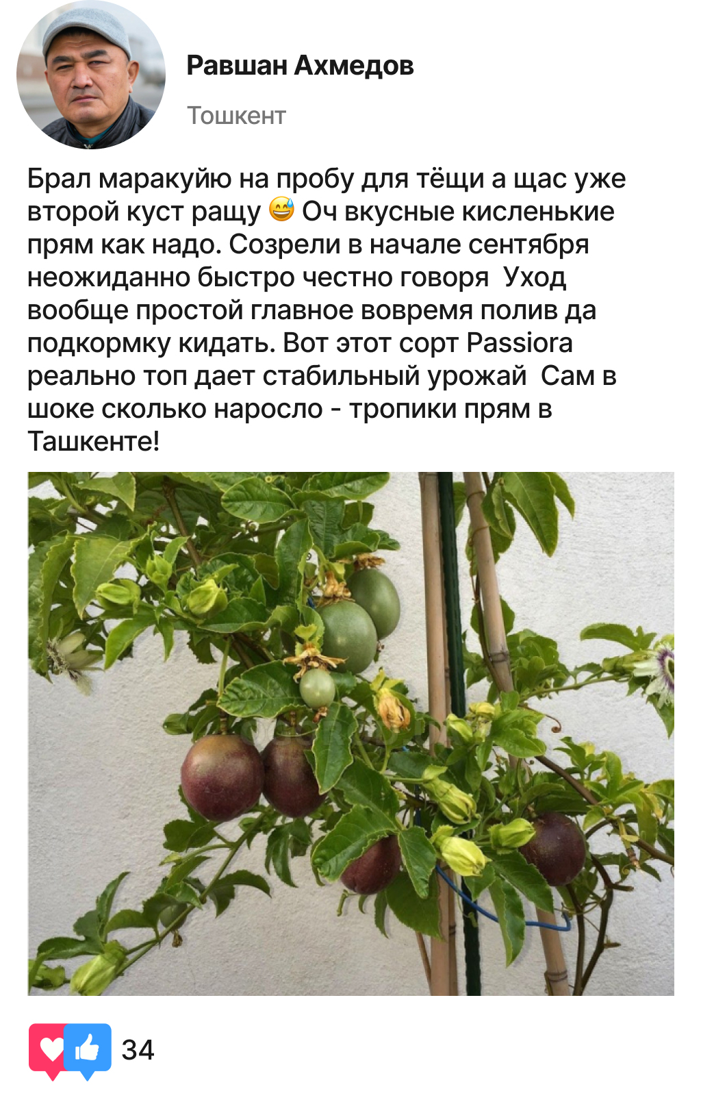 Ўзбекистон боғбонларидан Passiora маракуйя навини етиштириш бўйича ҳақиқий тажриба!